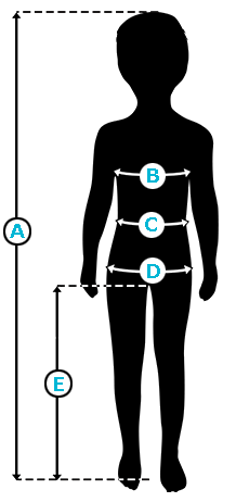| Height (A) | 36-43 in | 44-50 in | 51-57 in | 58-64 in |
