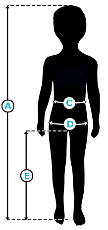 | Height (A) | 104 cm | 116 cm | 128 cm | 140 cm | 152 cm | 164 cm |