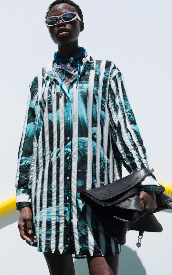 Morsko navdihnjeni vzorci, kroji z mehkimi zaobljenimi linijami, umetniško dekonstruirani patchwork in džins, obarvan v odtenke sončnega zahoda – elementi, ki oblikujejo prepoznaven in sofisticiran videz.